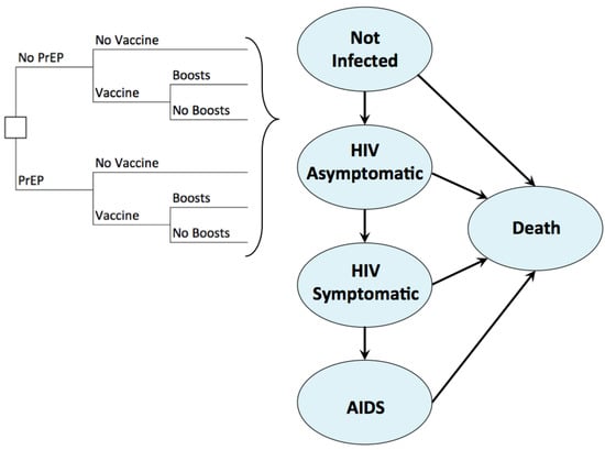 - Long, E.F.; Brandeau, M.L.; Owens, D.K. Potential population health outcomes and expenditures of HIV vaccination strategies in the United States. Vaccine 2009, 27, 5402–5410. [Google Scholar] [CrossRef] [PubMed]