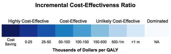- Neumann, P.J.; Sanders, G.; Russell, L.; Siegel, J.; Ganiats, T. Cost-Effectiveness in Health and Medicine, 2nd ed.; Oxford University Press: New York, NY, USA, 2017. [Google Scholar]