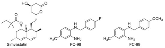 Simvastatin, FC-98 and FC-99 (from left to right).