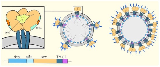 While the MVA VLVs mentioned above [57,65]—in contrast to the non-VLV MVA expressing BG505 Env [45]—are efficient inducers of trimer binding antibodies, they are poor T cell inducers [64]. In agreement with other studies, MVA VLVs need DNA priming [64] or, ideally, another viral priming [45], to facilitate competitiveness of the transgene product with vector derived products [66].
