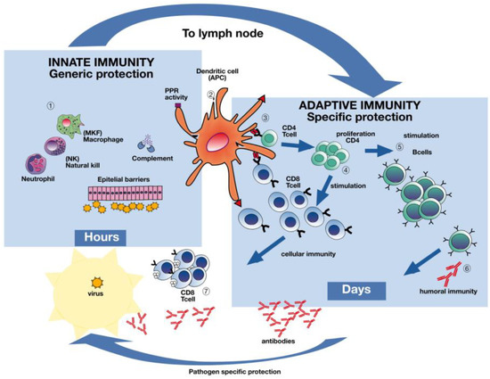 In the later years, the research focus on influenza immunity has widened from protective antibody responses to understanding the cellular response to influenza infection [70,71,72,73]. An important milestone on the way to develop a “universal” influenza vaccine will depend on developing a vaccine that is capable of inducing broad cross-reactive protection associated T-cell responses, which could mitigate the problem of vaccine strain specificity [74]. Both CD4 and CD8 T-cells have been linked to reduced severity of influenza disease (Figure 2 Sections 4 and 7), and different T-cell response patterns have been found in severely infected and mildly infected or vaccinated people [75]. The vaccinated and mildly infected patients showed similar immune response patterns, differing from patients with severe disease [75].