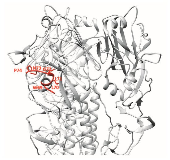 IAV entry into host cells involves attachment to sialic acid-containing receptors, followed by endocytosis of the virus into endosomes where the reduction in pH induces a conformational change in HA, leading to membrane fusion and release of the viral genome into the cytoplasm []. The first step is dependent on the receptor subdomain located in HA1 and has been well-characterised and summarised in recent reviews [,,].