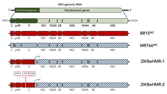- Xie, X.; Yang, Y.; Muruato, A.E.; Zou, J.; Shan, C.; Nunes, B.T.D.; Medeiros, D.B.A.; Vasconcelos, P.F.C.; Weaver, S.C.; Rossi, S.L.; et al. Understanding Zika Virus Stability and Developing a Chimeric Vaccine through Functional Analysis. MBio 2017, 8, e02134-16. [Google Scholar] [CrossRef] [PubMed]