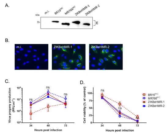 3.1. Characterization of Viral Clone ZIKBeHMR-2