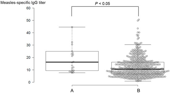 3.3. Divergence of Measles-IgG Antibody Titers by Medical History of Measles