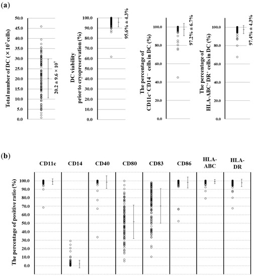 In the era of the field of personalized cancer therapies, feasible, well-tolerated, and promising immunologic and multimodal therapies for various types of cancers are expected. Quality-verified DC vaccines are required to achieve the expected level of effectiveness [32]. The reliable and reproducible manufacturing of DC vaccines is necessary for multicenter clinical applications and trials.