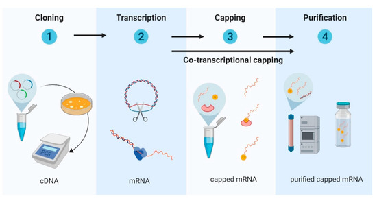 - Fuchs, A.-L.; Neu, A.; Sprangers, R. A general method for rapid and cost-efficient large-scale production of 5′ capped RNA. RNA 2016, 22, 1454–1466. [Google Scholar] [CrossRef] [PubMed]