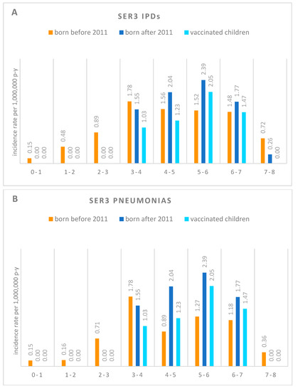 3.2. Impact of PCV13 on ser3 IPD Incidence Rates in a Cohort of Italian Children under 8