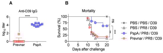 3.3. PspA Immunization Is Protective against Serotype 2 Bacterial Challenge during Co-Infection