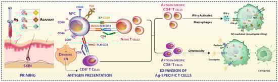 Transcriptional profiling of genes upregulated during L. infantum infection shows that there is a marked difference in the gene expression in infected mice when compared to control mice. Upregulation of Th1 and M1 macrophage activation markers like Ifng, Stat1, Cxcl9, Cxcl10, Ccr5, Cxcr3, Xcl1, and Ccl3 occurs in early infection. Of the 112 genes studied, 22 showed differential expression in infected vs. uninfected mice. Il12rb2, Il23r, and Ptgs2 were exclusively expressed only in infected mice but not in the control group, suggesting that the immune molecules may vary drastically under the condition when initial priming is done (uninfected) compared to when subsequent infection occurs [190]. Thus, an aim in vaccination is to induce the balanced expression of co-stimulatory and co-inhibitory molecules such that appropriate Th cell priming occurs.