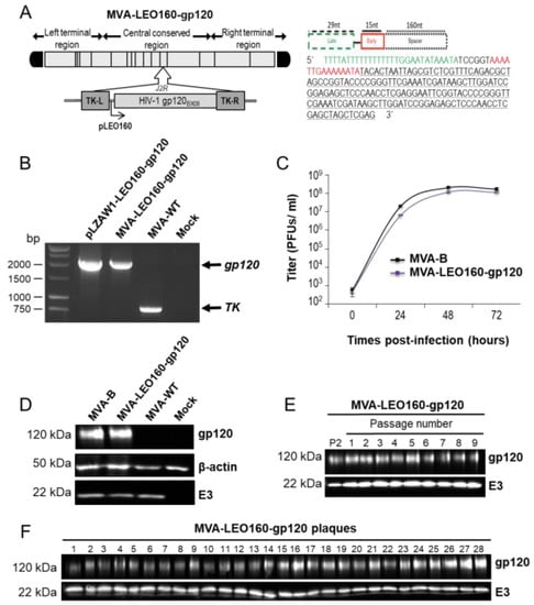 2.5. Generation of MVA-LEO160-gp120 Recombinant Virus