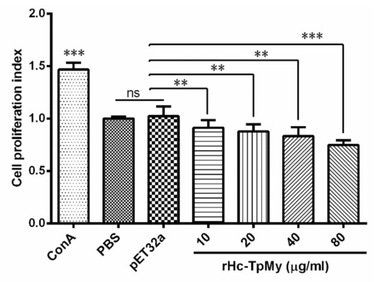 3.5. PBMCs Proliferation Effected by rHc-TpMy