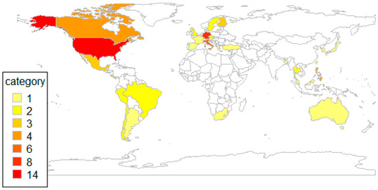 Geographical distribution of studies comparing co-administration versus separate administration.