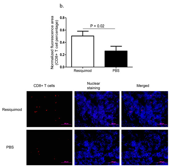 - Wang, C.; Zhou, Q.; Wang, X.; Wu, X.; Chen, X.; Li, J.; Zhu, Z.; Liu, B.; Su, L. The TLR7 agonist induces tumor regression both by promoting CD4+ T cells proliferation and by reversing T regulatory cell-mediated suppression via dendritic cells. Oncotarget 2015, 6, 1779. [Google Scholar] [CrossRef]