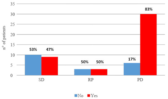 Association between response to immunotherapy and previous locoregional treatment. SD: stable disease; RP: partial response; PD: progressive disease.