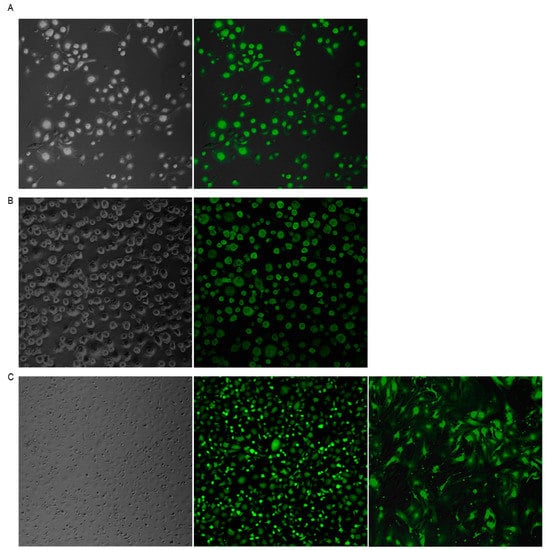 3.2. SeV Infection Induced Stable GFP Expression in Ovine Cells