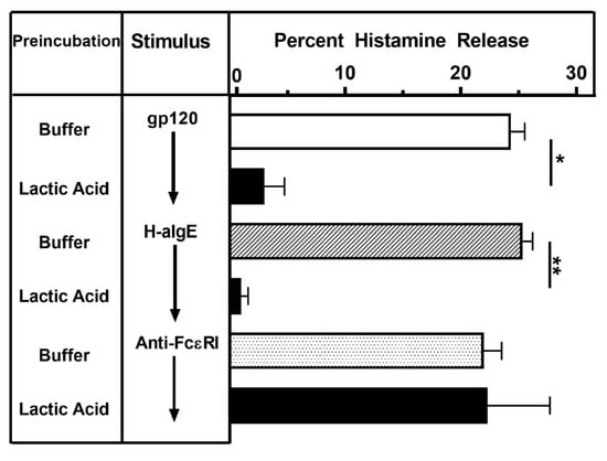 3.4. Effect of Lactic Acid on gp120-Induced Histamine Release from HLMCs