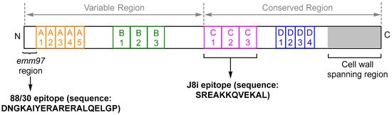 - Brandt, E.R.; Teh, T.; Relf, W.A.; Hobb, R.I.; Good, M.F. Protective and Nonprotective Epitopes from Amino Termini of M Proteins from Australian Aboriginal Isolates and Reference Strains of Group A Streptococci. Infect. Immun. 2000, 68, 6587–6594. [Google Scholar] [CrossRef][Green Version]