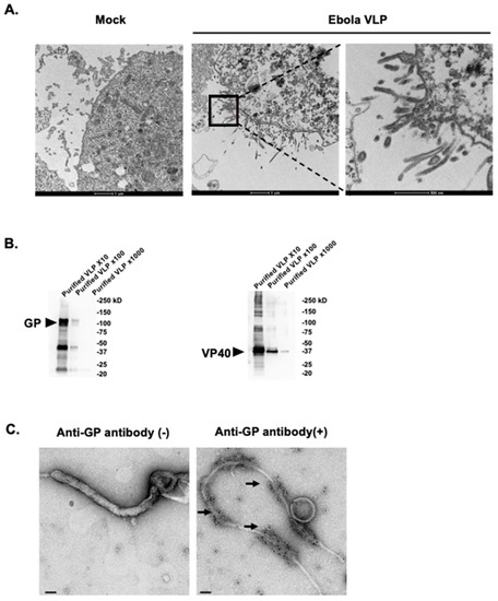 2.3. Detection of Ebola VLP Secretion by Transmission Electron Microscopy (TEM)