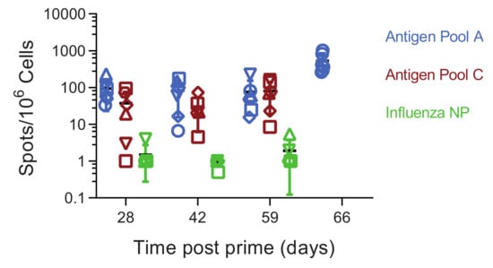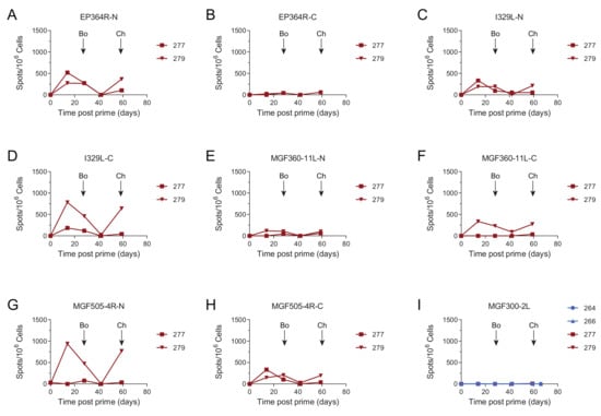 3.4. Immune Responses after Challenge in Surviving Animals in Experiment 1