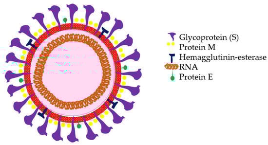 Coronaviruses are members of the Orthocoronavirinae subfamily within the Coronaviridae family (order Nidovirales). This subfamily comprises four genera—Alphacoronavirus, Betacoronavirus, Gammacoronavirus, and Deltacoronavirus, according to their genetic structures. Alphacoronaviruses and betacoronaviruses infect only mammals and are normally responsible for respiratory infections in humans and gastroenteritis in animals. Structurally, coronaviruses are spherical viruses 100–160 nm in diameter, with a lipid bilayer envelope containing positively polarized single-stranded RNA (ssRNA) between 26 and 32 kilobases in length. The SARS-CoV-2 virus genome encodes four structural proteins—protein S (spike protein), protein E (envelope), protein M (membrane), and protein N (nucleocapsid) (Figure 1).