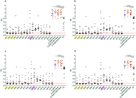 3.5. IgG Antibodies of Human Subjects Target Mainly Conserved and Exposed G-Derived Peptides but React also with Buried Peptides