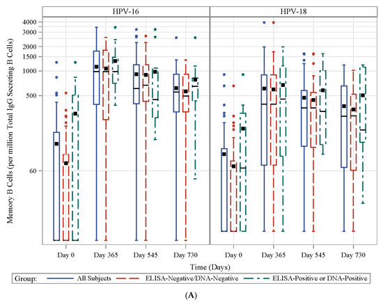 - Matsui, K.; Adelsberger, J.W.; Kemp, T.J.; Baseler, M.W.; Ledgerwood, J.E.; Pinto, L.A. Circulating CXCR5(+)CD4(+) T follicular-like helper cell and memory B cell responses to human papillomavirus vaccines. PLoS ONE 2015, 10, e0137195. [Google Scholar] [CrossRef]