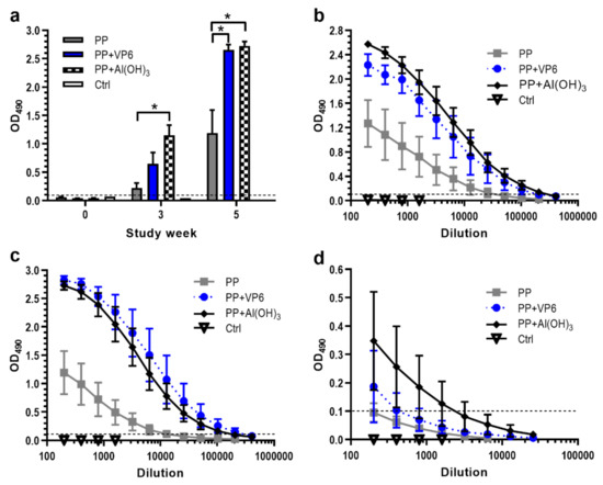 3.2. VP6 Effect on Immunogenicity of P Particles