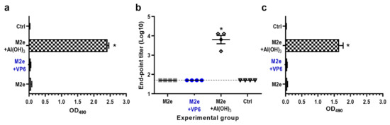 3.3. Induction of M2e-Specific Serum Antibodies by Al(OH)3 Only