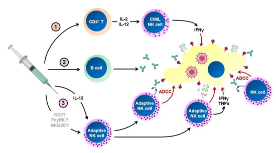 - Horowitz, A.; Behrens, R.H.; Okell, L.; Fooks, A.R.; Riley, E.M. NK cells as effectors of acquired immune responses: Effector CD4+ T cell-dependent activation of NK cells following vaccination. J. Immunol. 2010, 185, 2808–2818. [Google Scholar] [CrossRef]