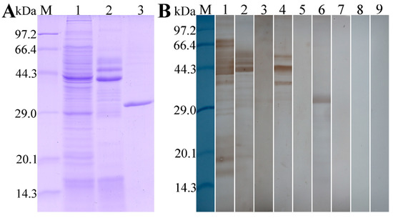 2.5. Western Blotting Analysis of rTsT Antigenicity