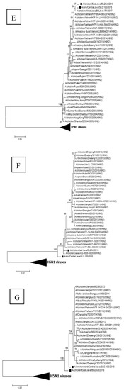 - Ludwig, S.; Schultz, U.; Mandler, J.; Fitch, W.M.; Scholtissek, C. Phylogenetic relationship of the nonstructural (NS) genes of influenza A viruses. Virology 1991, 183, 566–577. [Google Scholar] [CrossRef]