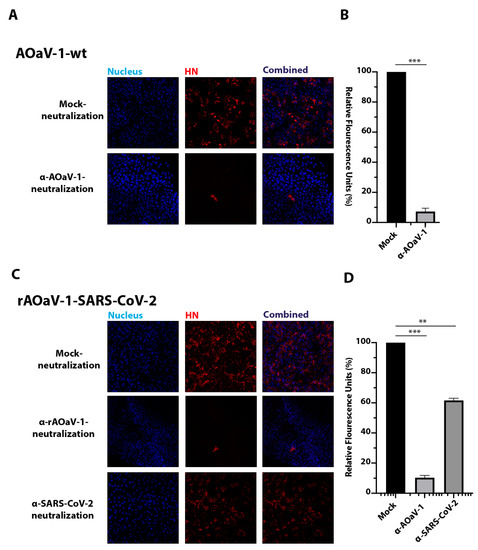 2.6. Sensitivity of rAOaV-1-SARS-CoV-2 and AOaV-1-wt to Antisera