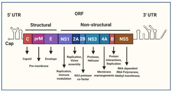 - Mazeaud, C.; Freppel, W.; Chatel-Chaix, L. The Multiples Fates of the Flavivirus RNA Genome During Pathogenesis. Front. Genet. 2018, 9, 595. [Google Scholar] [CrossRef]