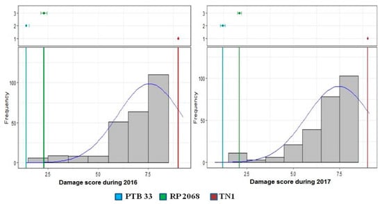 - Balachiranjeevi, C.H.; Prahalada, G.D.; Mahender, A.; Jamaloddin, M.D.; Sevilla, M.A.L.; Marfori-Nazarea, C.M. Identification of a novel locus, BPH38(t), conferring resistance to brown planthopper (Nilaparvata lugens Stal.) using early backcross population in rice (Oryza sativa L.). Euphytica 2019, 215. [Google Scholar] [CrossRef]