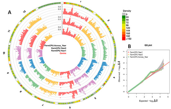 - Lipka, A.E.; Tian, F.; Wang, Q.S.; Peiffer, J.; Li, M.; Bradbury, P.J. GAPIT: Genome association and prediction integrated tool. Bioinformatics 2012, 28, 2397–2399. [Google Scholar] [CrossRef]