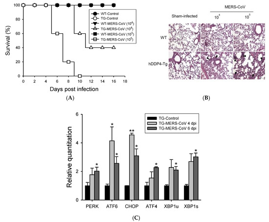 - Kim, J.; Yang, Y.L.; Jeong, Y.S.; Jang, Y.S. Middle East respiratory syndrome-coronavirus infection into established hDPP4-transgenic mice accelerates lung damage via activation of the pro-inflammatory response and pulmonary fibrosis. J. Microbiol. Biotechnol. 2020, 30, 427–438. [Google Scholar] [CrossRef]