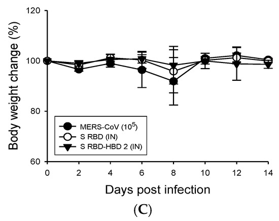 Chicago/Turabian StyleKim, Ju, Ye Lin Yang, Yongsu Jeong, and Yong-Suk Jang. 2020. "Conjugation of Human β-Defensin 2 to Spike Protein Receptor-Binding Domain Induces Antigen-Specific Protective Immunity against Middle East Respiratory Syndrome Coronavirus Infection in Human Dipeptidyl Peptidase 4 Transgenic Mice" Vaccines 8, no. 4: 635. https://doi.org/10.3390/vaccines8040635