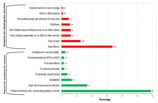 The reasons for accepting or refusing the vaccine among health care workers.