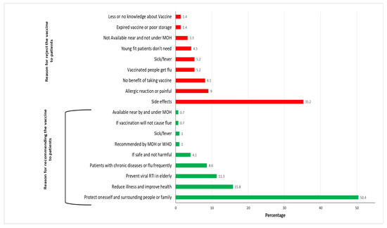 The reasons for recommending and rejection of the vaccine to patients.
