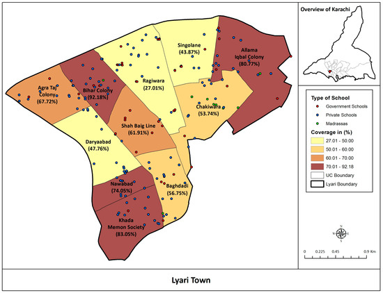 Estimated coverage of Typbar TCV was calculated among children 6 months to 15 years of age in all the union councils of Lyari Town, Karachi (Figure 1).