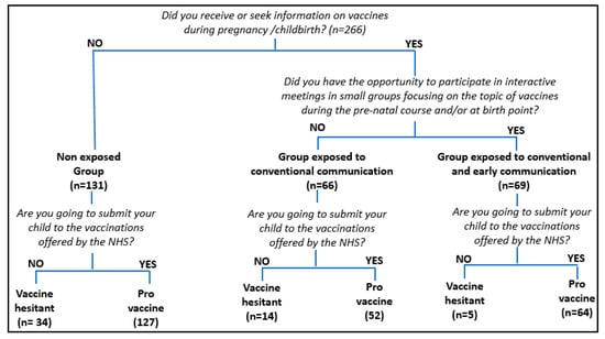 - “Non-exposed group”, i.e., mothers who declare that they have not received or looked for any specific information on vaccines during pregnancy/childbirth and who have not attended meetings on this topic.