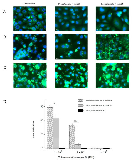 3.3. The Ability of mAb26 and mAb51 to Inhibit Chlamydial Infection In Vitro