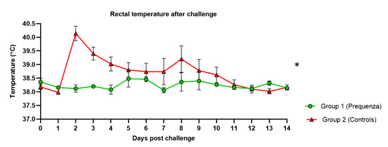 | Peak change rectal temperature post-challenge a | 0.0478 |