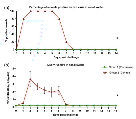 3.3. Virus Shedding after Challenge with H3N8 A/equine/Venlo/19 (FC1 Sub-Lineage)