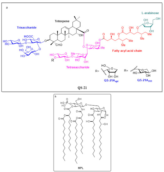 Structures of QS-21 (a) and MPL (b).