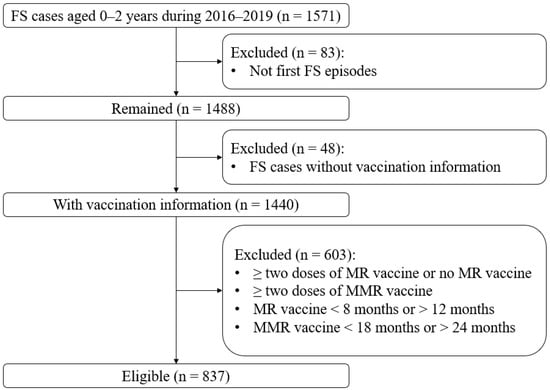 Flowchart of the study participants. Abbreviations: FSs, febrile seizures; MMR, measles-mumps-rubella; MR, measles-rubella.