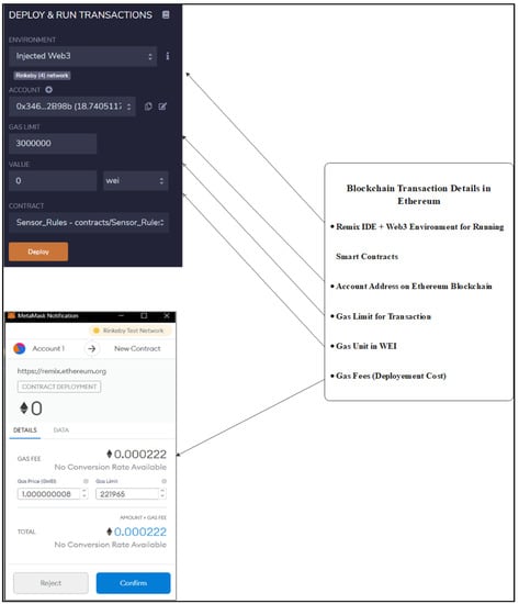 The evaluation of gas consumption for the verification and deployment of smart contract is done. In Figure 7 the maximum gas limits and the consumed gas is presented with respect to contract block number. However, the equations have been used for the evaluation of gas fees to ether coin and ether coin to US dollars are as follows: