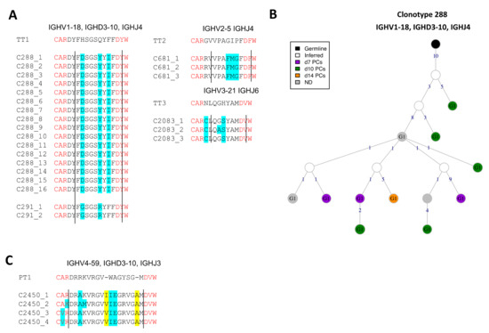 3.3.3. IGHV3 and IGHJ4 Genes Predominant in d0 PB/PCs