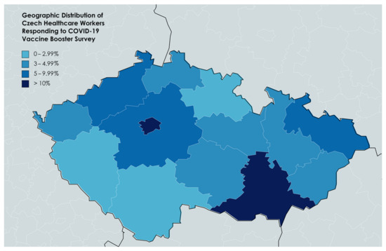 Geographic Distribution of Czech Healthcare Workers Responding to COVID-19 Vaccine BD Survey, November 2021 (n = 3454).